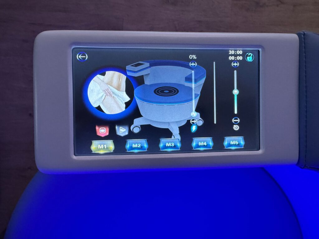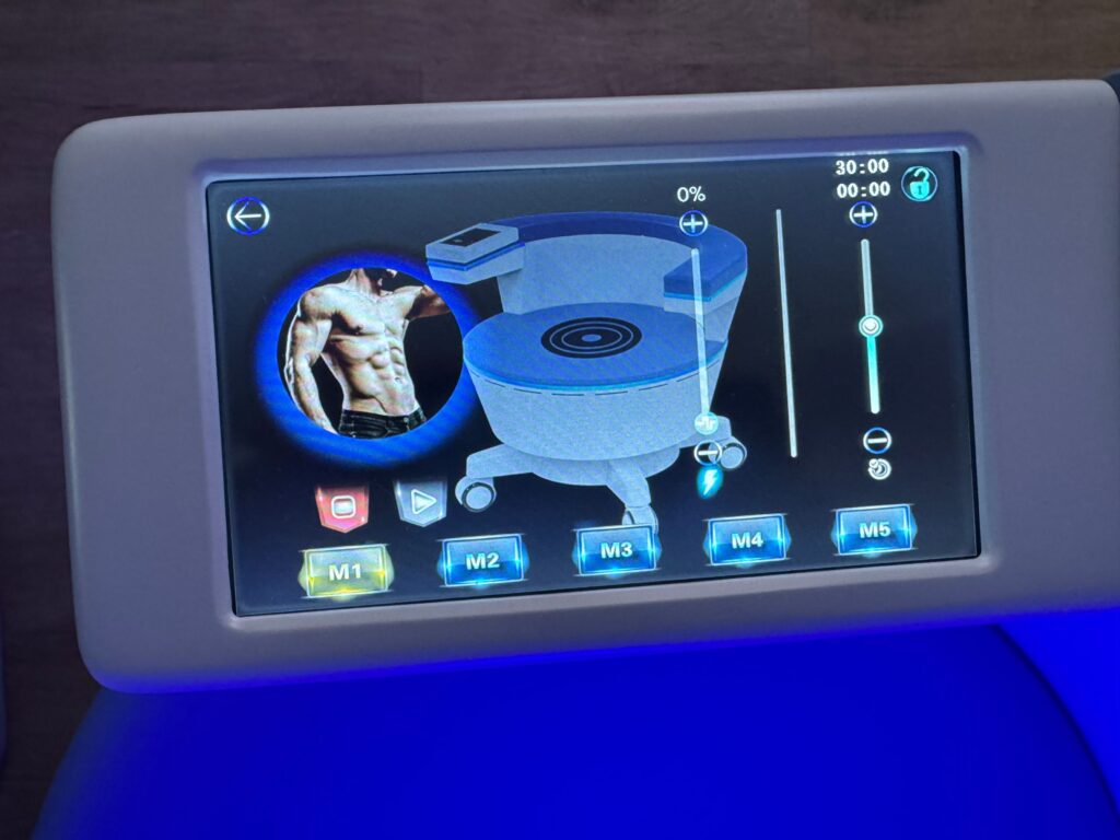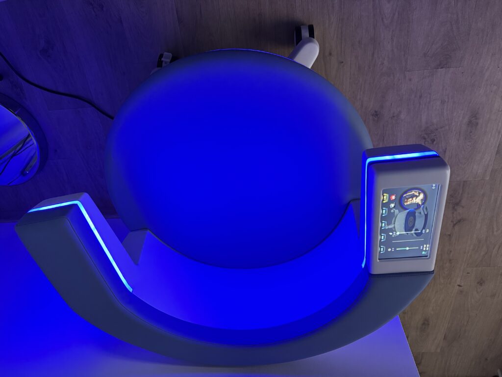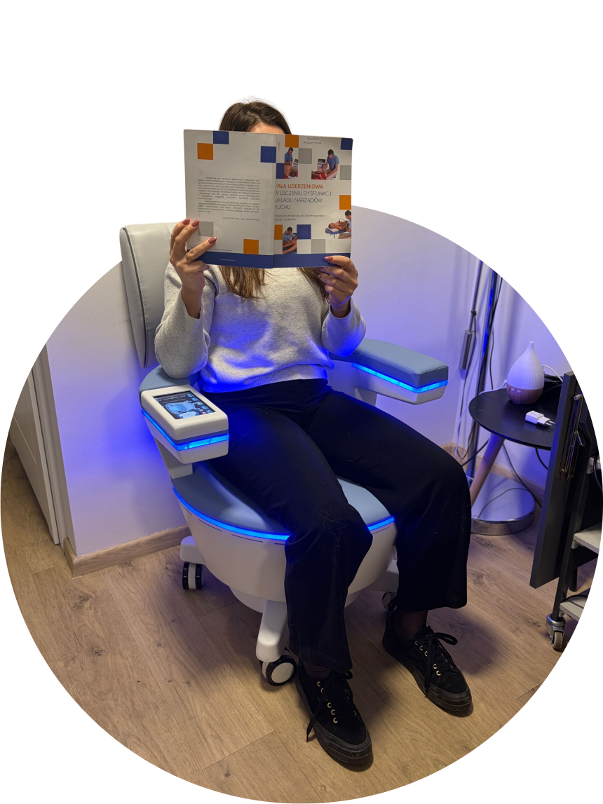 Pacjenci – szczególnie ci z osłabionymi mięśniami dna miednicy – zazwyczaj nie są w stanie osiągnąć tak wysokiego poziomu napięcia, utrzymać go odpowiednio długo, a następnie prawidłowo rozluźnić mięśnie. Właśnie dlatego fotel wykonuje ten zaawansowany trening „za pacjenta”: krzesło emitujące silnie skoncentrowane pole elektromagnetyczne prowadzi mięśnie przez cykle intensywnego skurczu i kontrolowanej relaksacji. Taki schemat pracy jest nie tylko bardzo skuteczny, ale też bezpieczny i komfortowy.